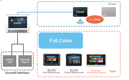 DONICA 的WAVOD 系統(tǒng)是由客艙網絡服務單元 (CNSU)、客艙無線接入設備 (CWAP )與智能終端(SLCD)部件組網,系統(tǒng)軟件包括OAM 軟件、SLCD App 及對客Portal軟件。